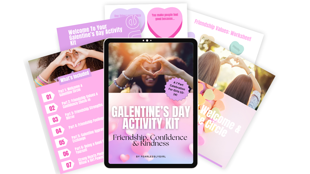 Create Strong Hearts and Strong Friendships with Confidence, Connection, and Heart using the Galentine’s Day Activity Kit